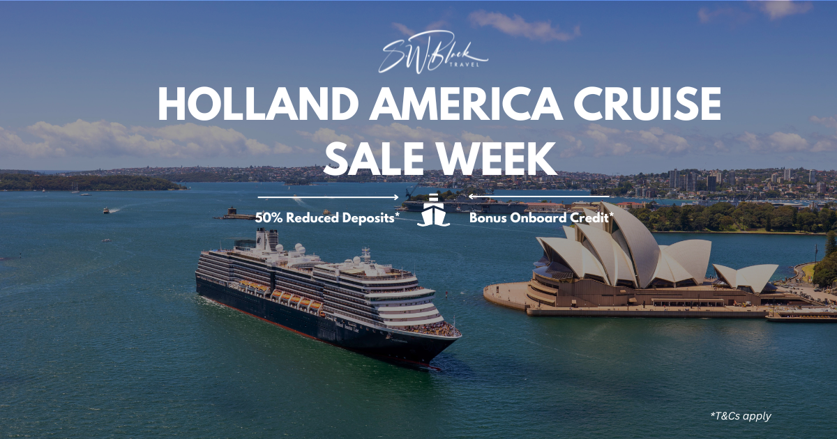 Holland America Cruise Sale Week runs for one week only. Secure your cruise today and enjoy exclusive savings with S.W. Black Travel.